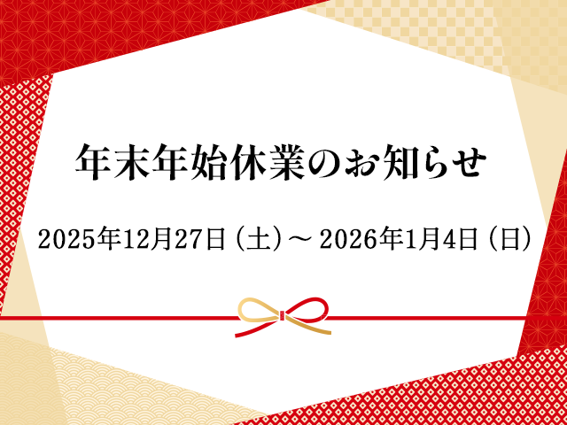 誠に勝手ながら、当社は下記の期間を年末年始休業とさせていただきます。